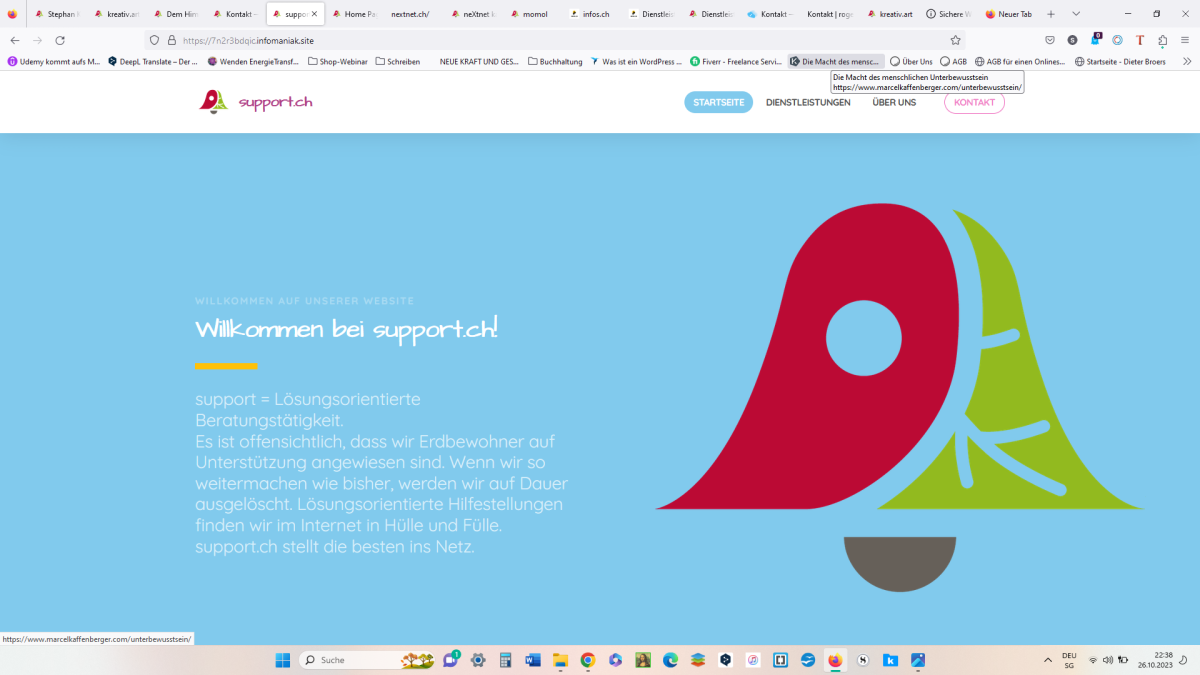 Es ist offensichtlich, dass wir Erdbewohner auf Unterstützung angewiesen sind. Wenn wir so weitermachen wie bisher, werden wir auf Dauer ausgelöscht. Lösungsorientierte Hilfestellungen finden wir im Internet in Hülle und Fülle. support.ch stellt die besten ins Netz, wobei selbsterfahrenes Lebensgut mit einbezogen wird.