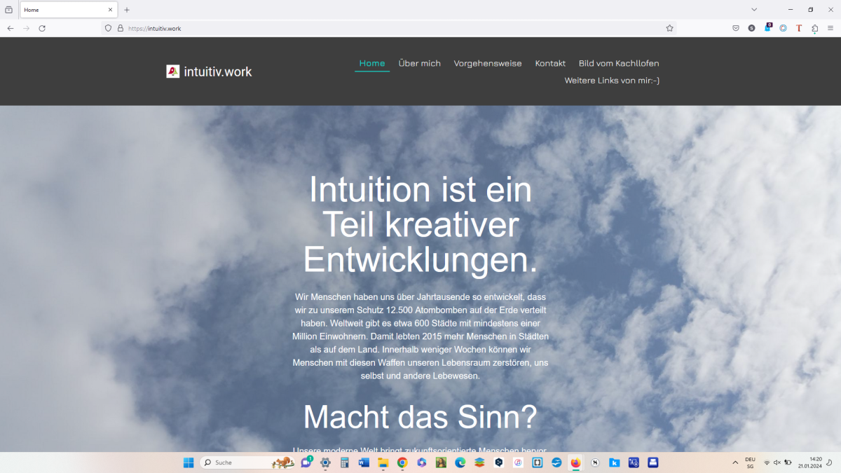 Unsere moderne Welt bringt zukunftsorientierte Menschen hervor. Ein Leben, das sich 44 Jahre lang im Wesentlichen durch intuitives Sein in die Gesellschaft integriert hat, hat mir nachhaltige intuitive Bewusstseinserfahrungen ermöglicht, die ich gerne an andere weitergeben oder deren Intuition aus einer anderen Perspektive gegen Entgelt unterstützen möchte.